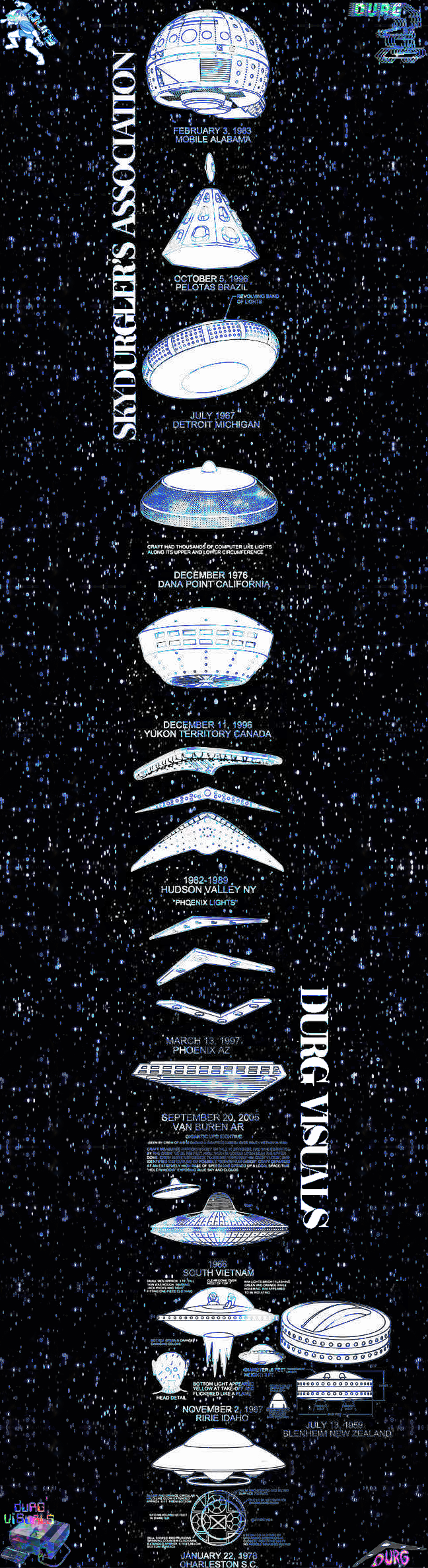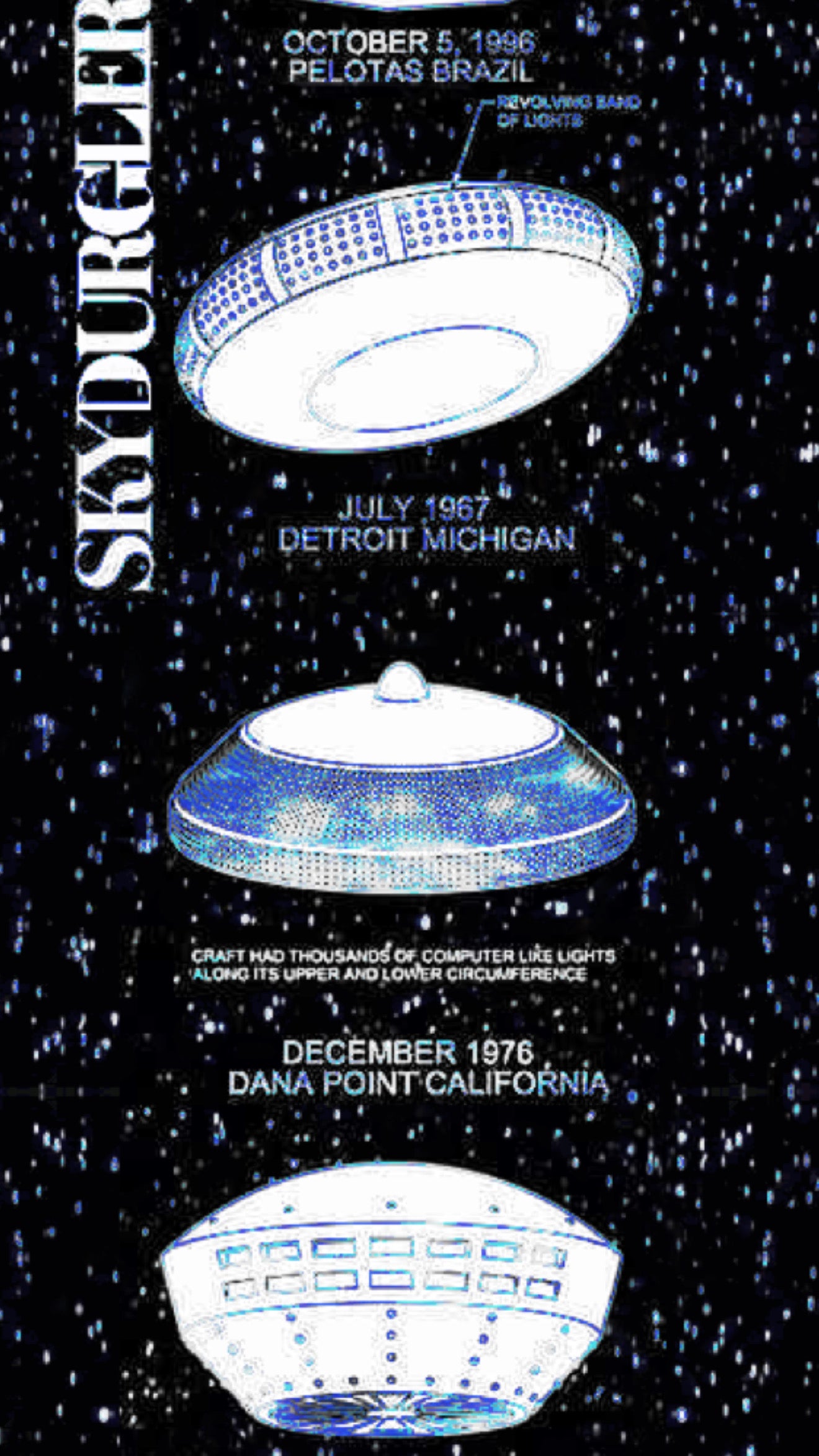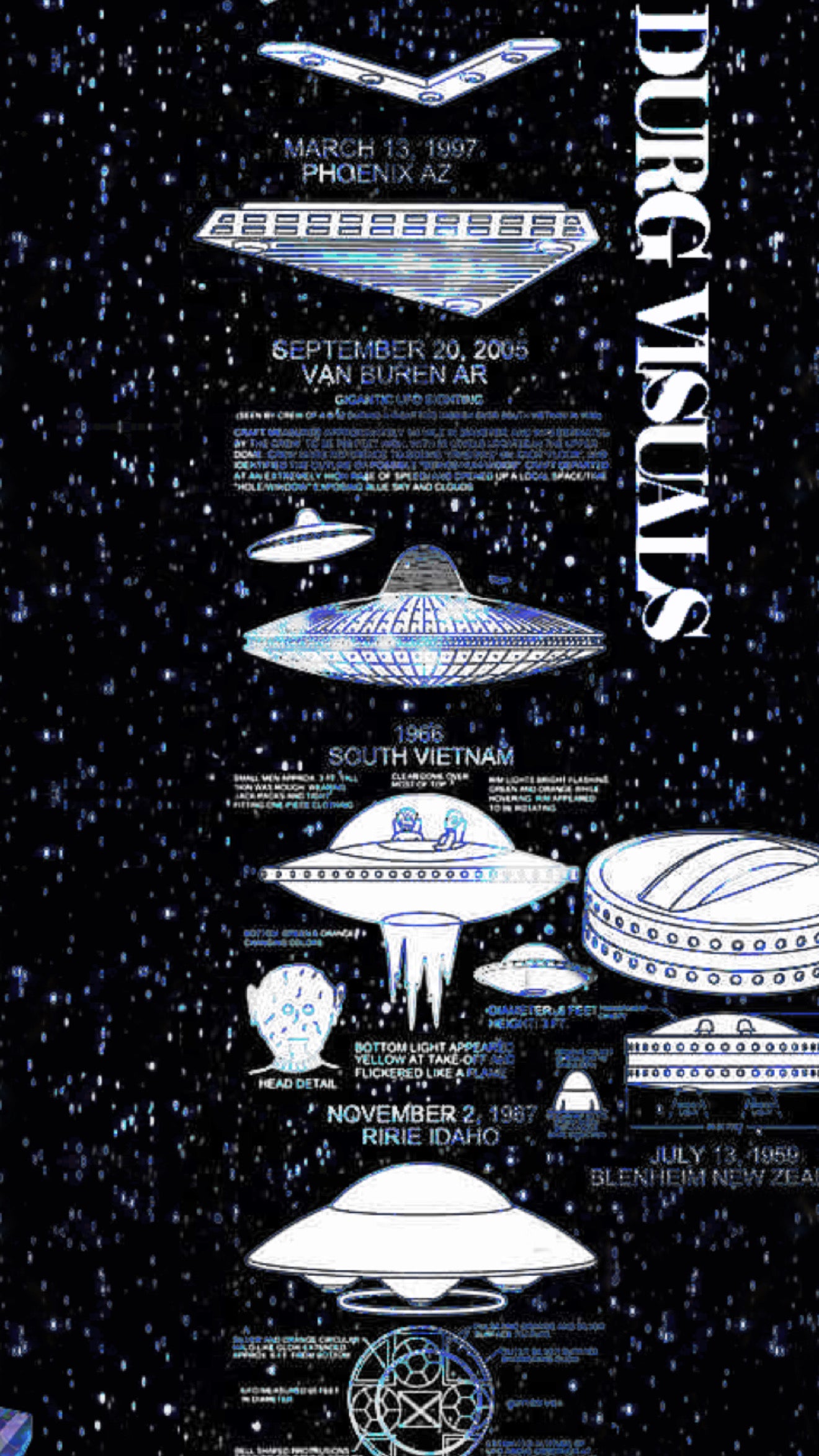 Limited Edition Blue Variant. Famous UFO sightings with dates and locations listed on the griptape for a profound aesthetic experience as well as very retro feel. Enjoy the experiences with this eye catching visual art piece on your next board. 🛸💫