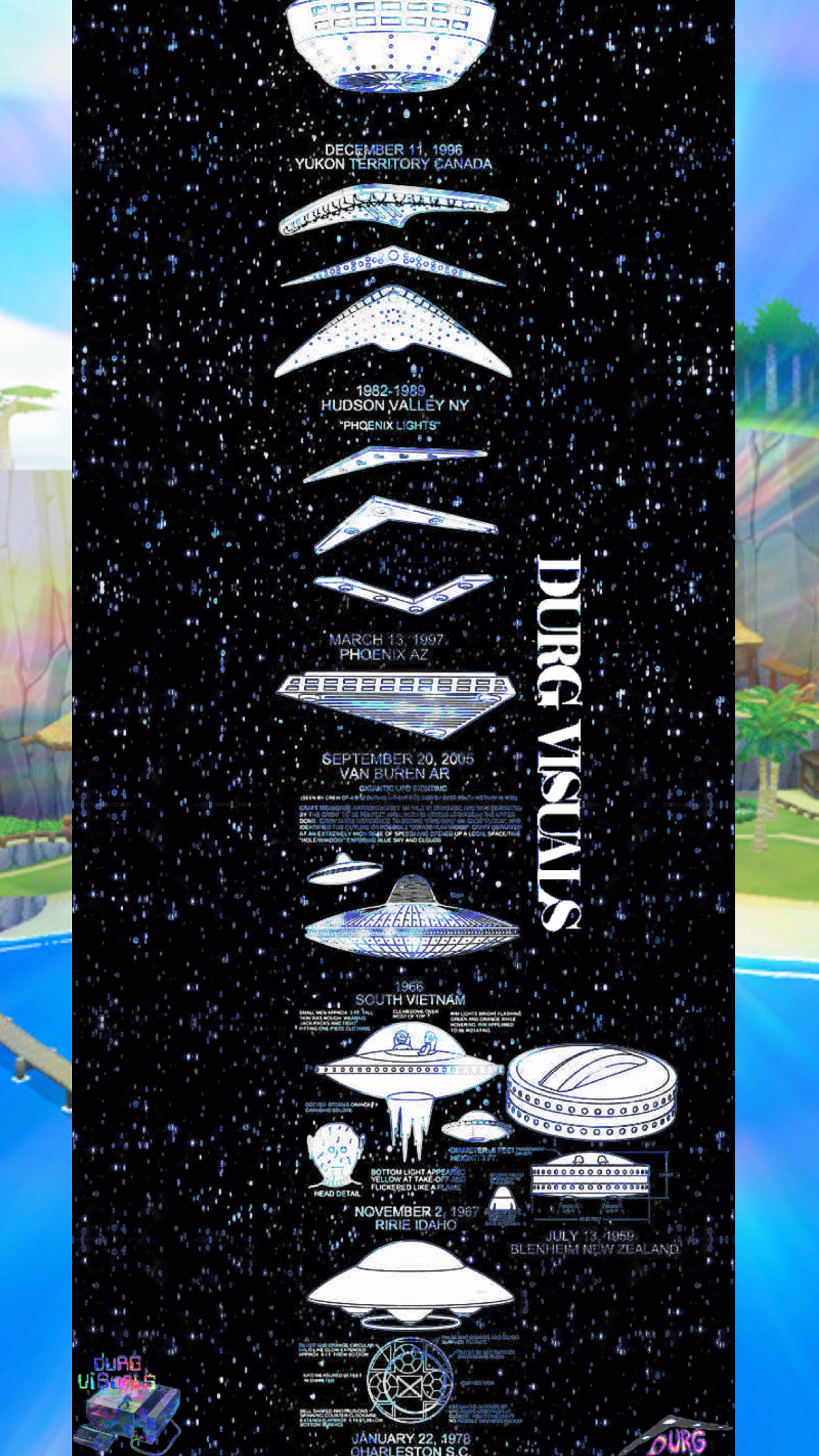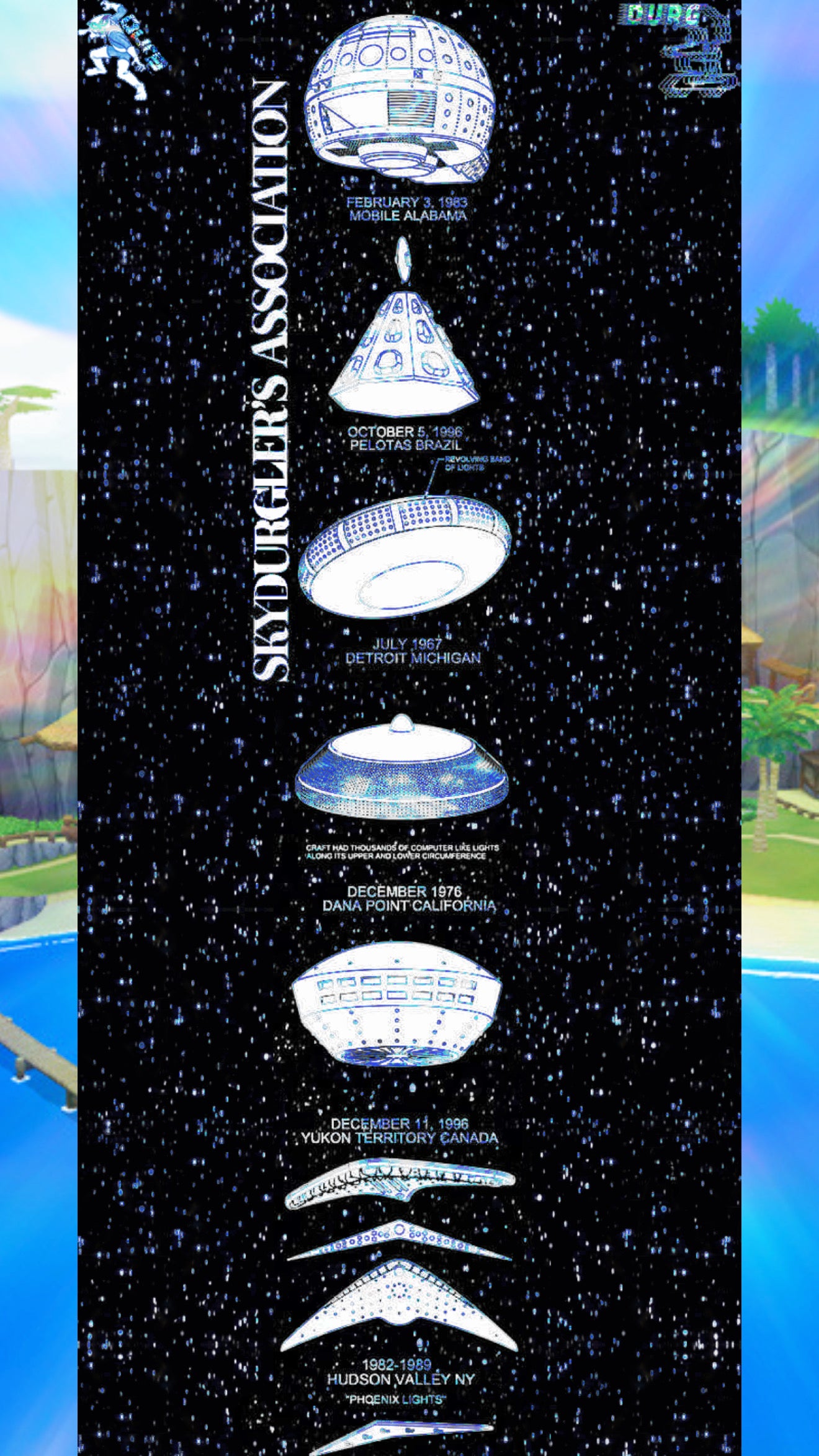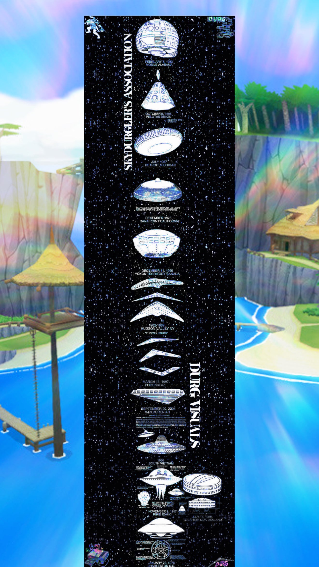 Limited Edition Blue Variant. Famous UFO sightings with dates and locations listed on the griptape for a profound aesthetic experience as well as very retro feel. Enjoy the experiences with this eye catching visual art piece on your next board. 🛸💫